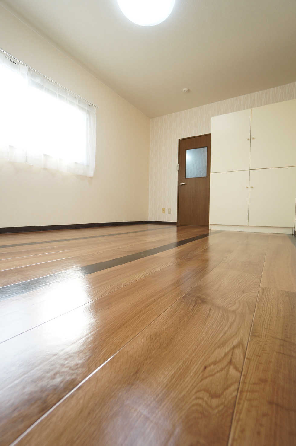 ラインの入った洋間の床面がユニークです!