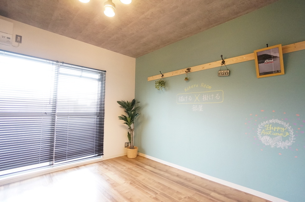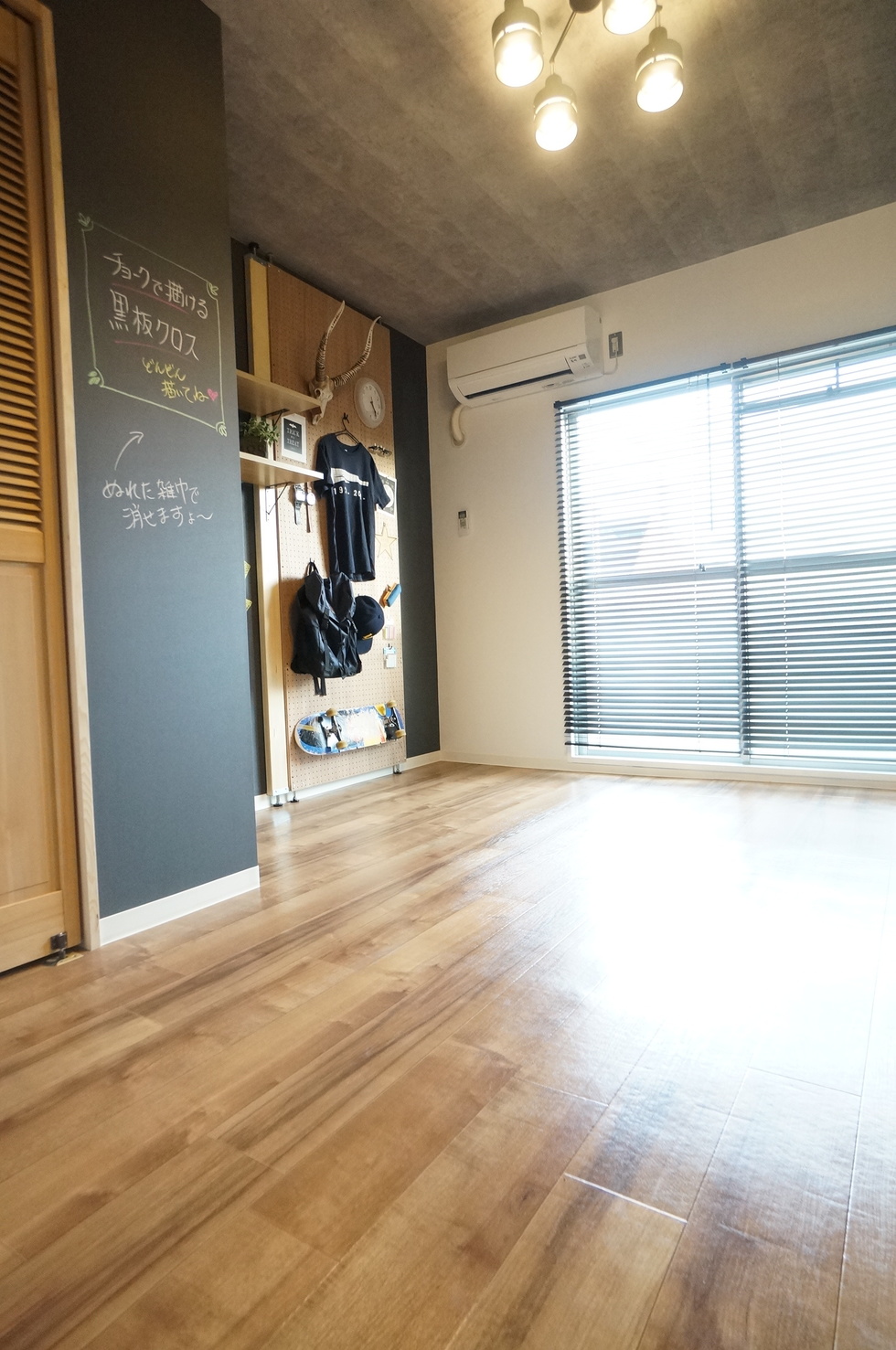 黒板塗料の壁に黒板クロス。チョークで自由に描いてください。