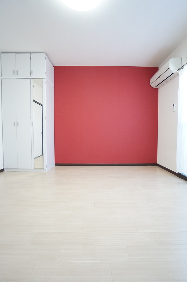元気の出る赤いアクセントクロスが好評です。