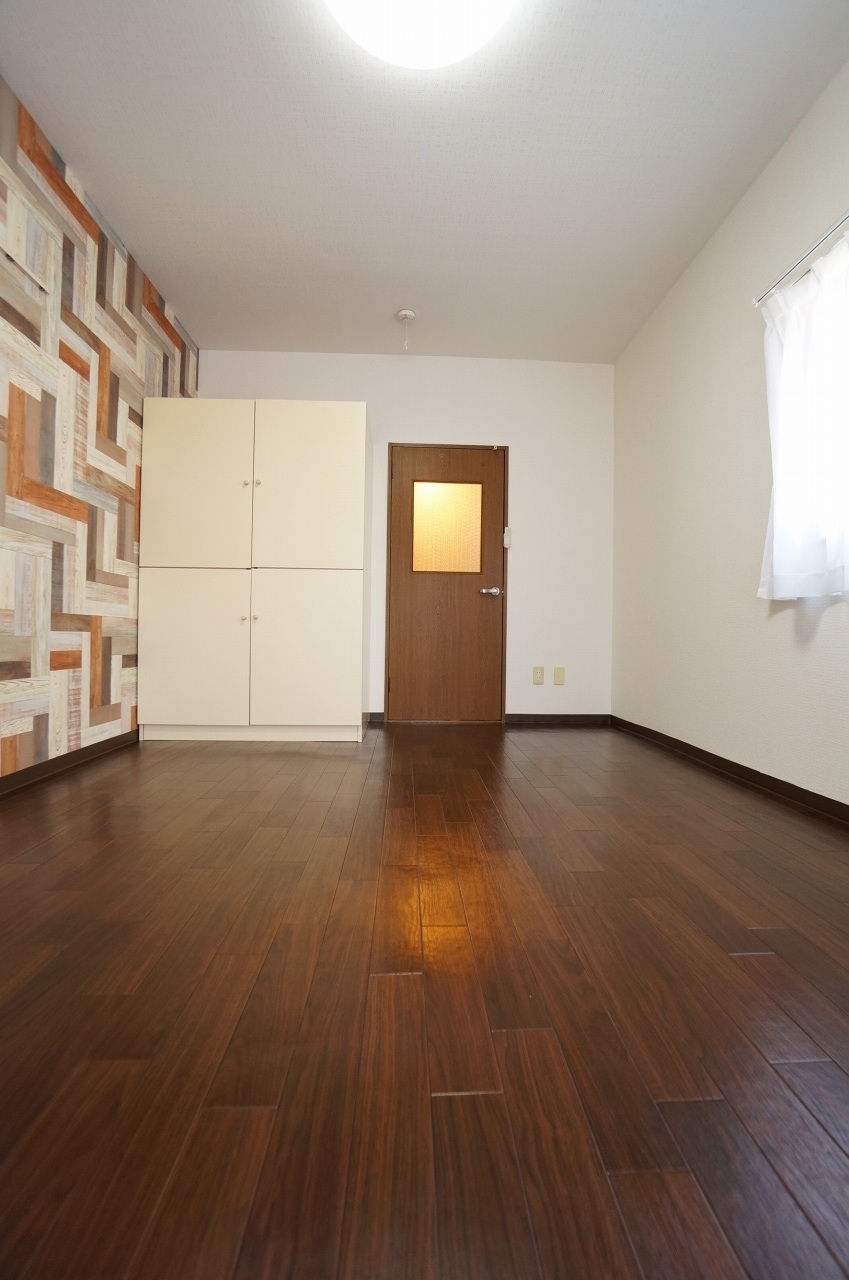 床壁張替えました。アクセント柄の洋間の壁が人気です!