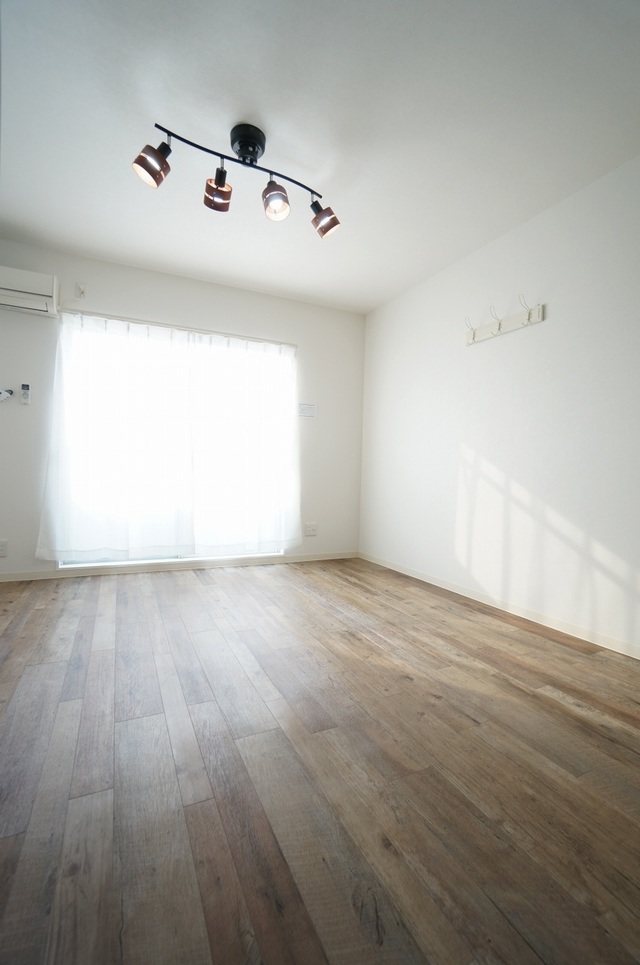 | 【設備】 | エアコン付、全室照明器具付、2口ガスコンロ付き対面キッチン、デジタルロック、TVモニターホン、シューズボックス、インターネット無料(室内WI-FI設置済み)、レースカーテンを入居時にプレゼント |