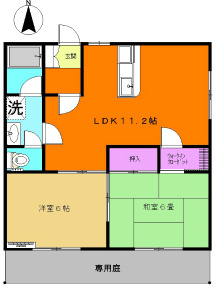 希少な庭付きのファミリー用2LDKです。