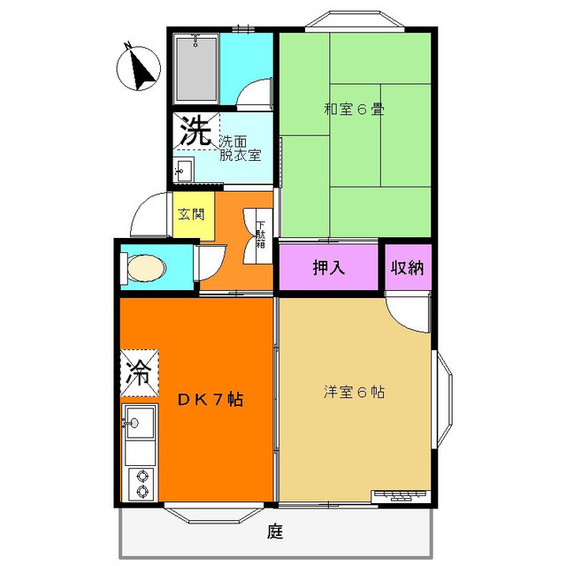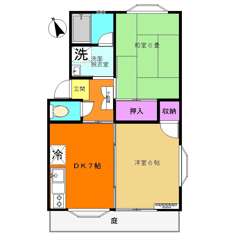 | 【間取】 | 2DK (DK6.5帖、洋室6帖、和室6帖) 42.0㎡ |